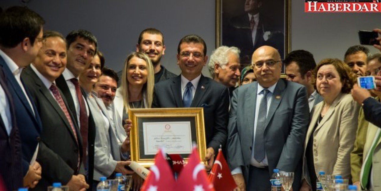 Burada mazbatasını İstanbul İl Seçim Kurulu Başkanı Ziya Bülent Öner’den teslim alan İmamoğlu, yaptığı teşekkür konuşmasında, "Şehrimize, milletimize, ülkemize hayırlı olmasını diliyorum. İstanbulumuz hem Türkiye’mizin hem Avrupa’nın en büyük kenti. Elbette bu seçim sürecindeyken bütün İstanbul İl Seçim Kurulu çalışanlarına, 39 ilçe seçim kurulu başkanlarına ve çalışanlarına, sandık kurulu üyelerine, tüm siyasi partilerin temsilcilerine, sandıktan çıkan neticeyi milletimizin iradesinin tecelli etmesini sağlayan demokrasi neferlerine teşekkür ediyorum" dedi.
