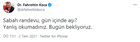 "Sabah randevu, gün içinde aşı? Yanlış okumadınız. Bugün bekliyoruz."