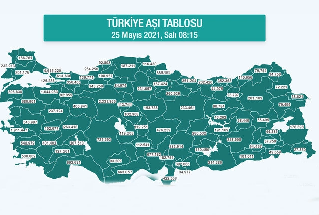 Sağlık Bakanlığı'nın sitesinde yer alan aşı tablosunda 25 Mayıs itibarıyla son durum şöyle;
