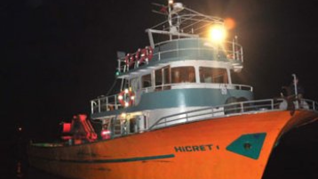 Libya'dan saatte 6-7 mil hız yapabilen radarı ve telsizi bulunmayan Hicret-1 isimli römorkör ile kaçan 7 Türk, Datça'nın Karaköy Körmen Limanı'nda karaya çıktı.