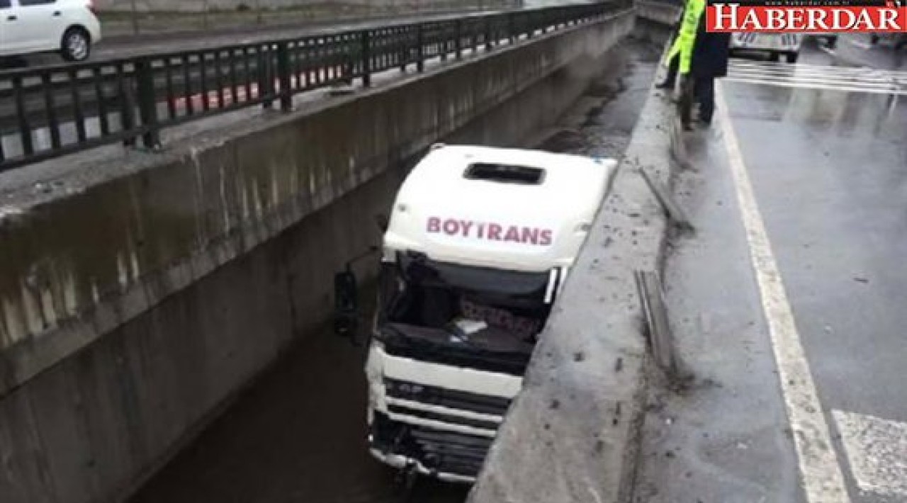 Bariyerleri parçalayan TIR, su kanalına kanalına uçtu. Kazada sürücü Yanar hafif yaralandı. TIR'ın tavanındaki kapaktan kendi imkanlarıyla çıkan Yanar, özel bir araçla Kanuni Sultan Süleyman Eğitim ve Araştırma Hastanesi'ne götürüldü.