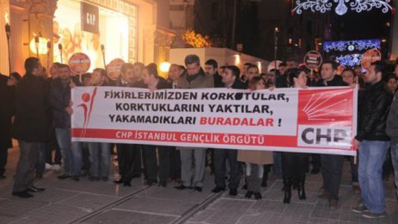 Galatasaray Lisesi önünde bir süre oturma eylemi yapan gençler adına basın açıklamasını CHP İstanbul İl Gençlik Kolu Başkanı Olgun Çelik okudu.