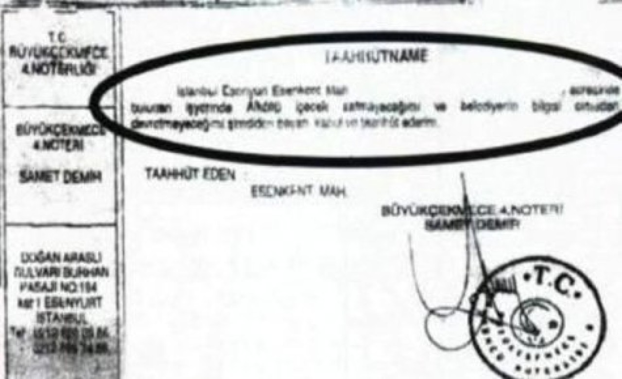 Esnaf noterden onaylattığı taahhütname ile, içki satmayacağına dair söz veriyor. Belediyenin istediği taahhütnameyi vermeyen esnafın ruhsatı uzatılmıyor. İddiaya göre belediye hafta sonu tatil ruhsatının yenilenmeyeceğini söylüyor.