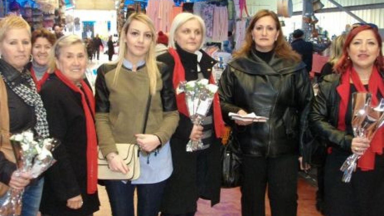 Kadın Kolları Başkanı Dilek Tekin ve yönetim kurulu üyesi kadınlar Büyükçekmece sokaklarını dolaşarak karşılaştıkları bütün kadınlara karanfil verip günlerini kutladılar.