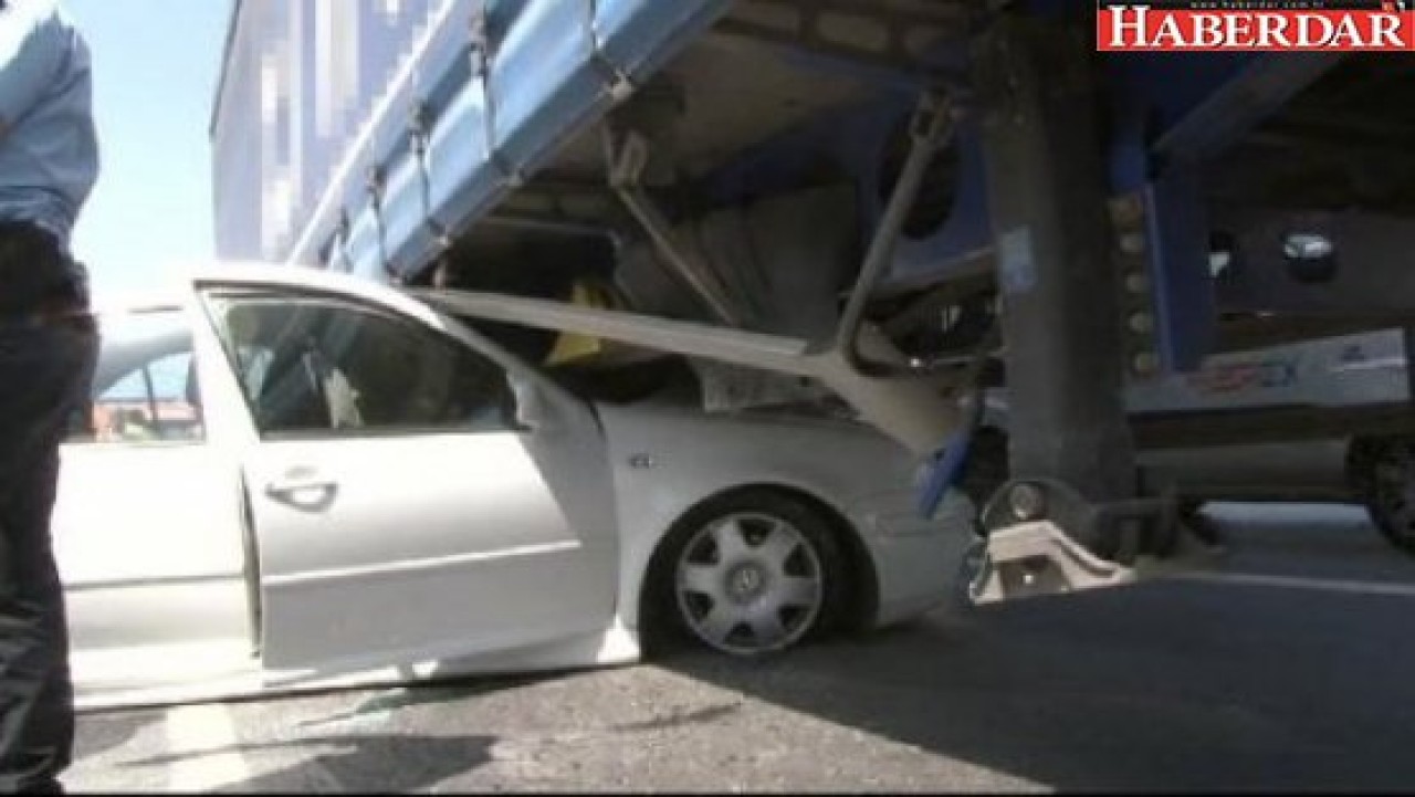 Kaza, TEM yolu, Ankara yönünde saat 10.30 sıralarında meydana geldi. Edinilen bilgilere göre, sağ şeritte seyir halindeki sürücü Nurten Altay yönetimindeki 34 H 8572 plakalı otomobile, hafriyat kamyonu çarptı. Bu sırada direksiyon hakimiyetini kaybeden sürücü, orta şeritteki Nazif Bayrak yönetimindeki TIR kamyonunun dorsesinin altına girdi. Bu sırada hafriyat kamyonu yoluna devam etti.
