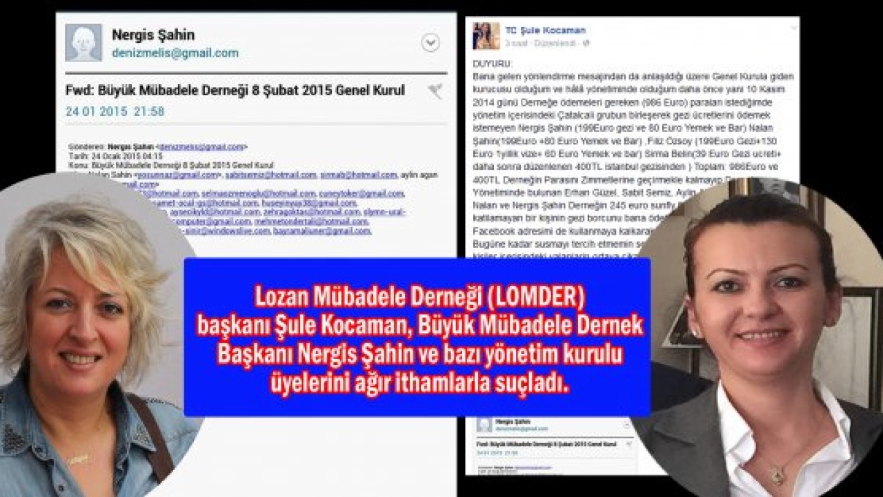 Şule Kocaman sosyal medya hesabı facebook sayfasında yaptığı DUYURU ile Lozan Büyük Mübadele Dernek yöneticilerine ağır ithamlardu bulundu.