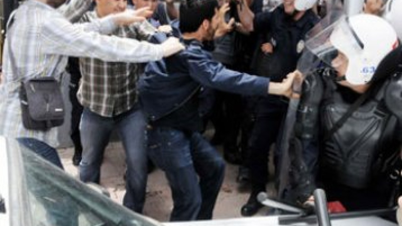BDP'liler, seçim otobüsünden çalınan marşı kapatmak isteyen polislere saldırdı. Polisin de copla müdahale ettiği olaylarda 9 kişi gözaltına alındı. 5'i polis çok sayıda kişinin de hafif yaralandığı gerginlik, BDP'lilerin uzaklaşmasıyla son buldu.