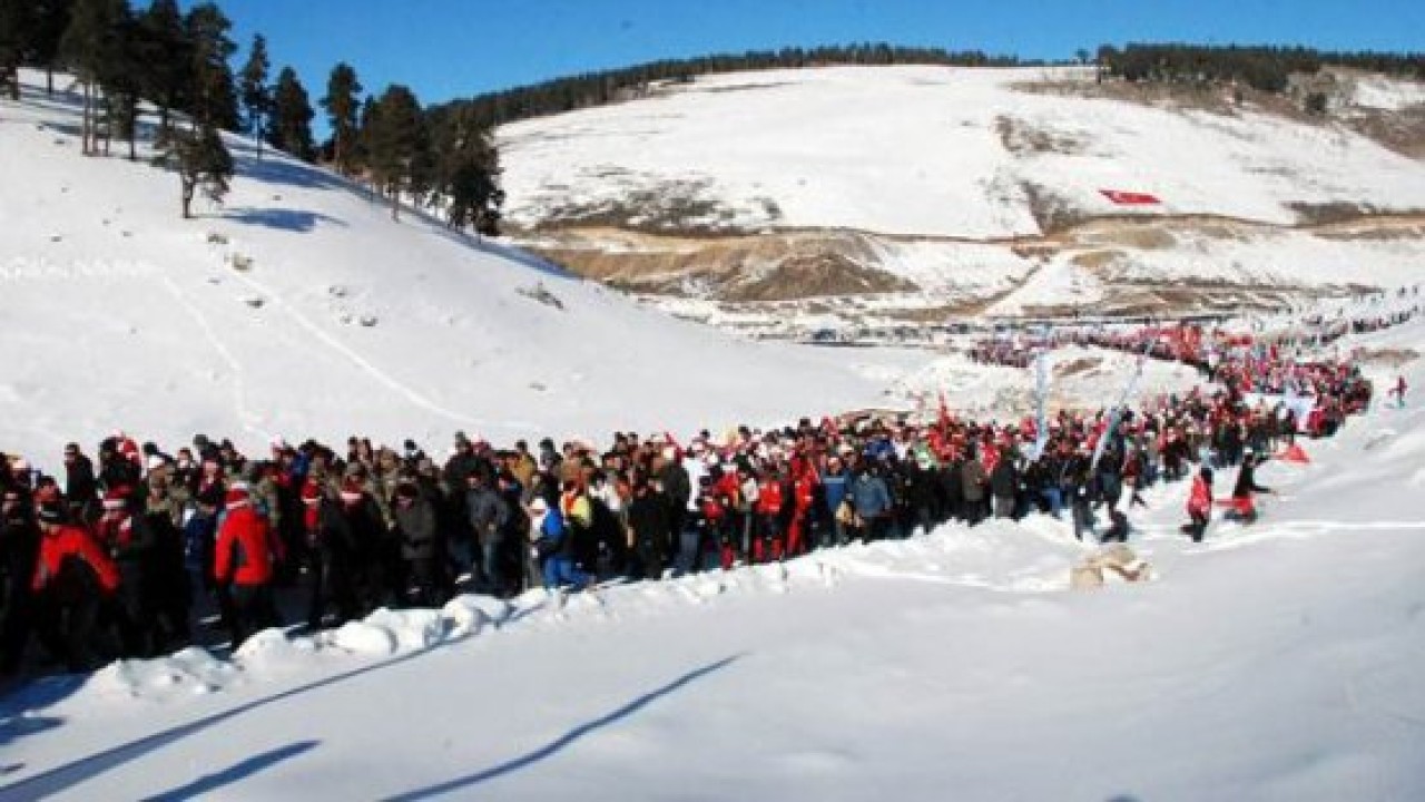 Cemil Çiçek’in açıklaması sonrası başlayan yürüyüşte katılımcılar dev bayraklarla ’Şehitler ölmez vatan bölünmez’ sloganlarıyla sıfırın altında 10 derece olan soğukta yürüyüşe başladı. Zorlu yürüyüşe katılanlar 8 kilometrelik Şehit Kurmay Albay Faruk Sungur yolunu izleyerek Yukarı Sarıkamış Mahallesi’ndeki tören alanına geldi.