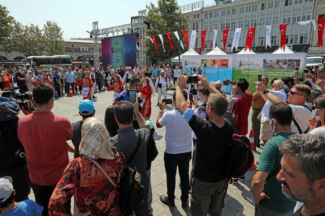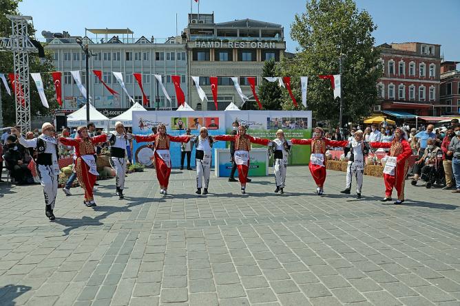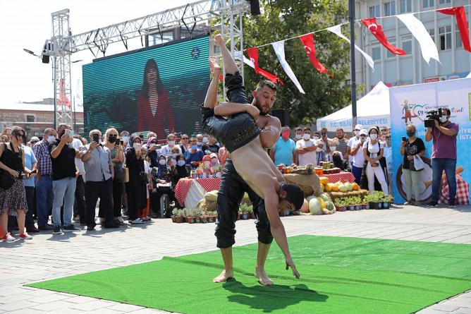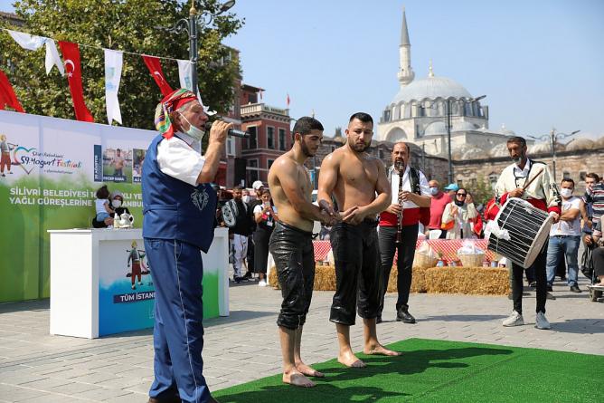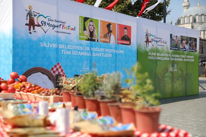 İstanbul Eminönü Meydanında Silivri fırtınası esti. Silivri Belediyesi, 59. Yoğurt Festivali ve 16. Yenici Mehmet Yağlı Güreşleri için Eminönü Meydanında tanıtım ve davet programı düzenledi. Şölen havasında geçen etkinlik Ahenk Sanat Kulübü’nün, Silivri yöresi halk oyunları gösterisi ile başladı. Daha sonra Cazgır Recep Koşan’ın davul ve zurna eşliğinde seslendirdiği manilerle iki pehlivan er meydanında güreşti. Kadın üretici Aysun Subaşı ise vatandaşlara meşhur Silivri yoğurdunun tarifi ve eşsiz lezzeti hakkında bilgiler vererek kısa bir yoğurt gösterisi sundu. Alanda kurulan stantlarda Silivri’nin bereketli topraklarında yetiştirilen ünlü lezzetlerden; karpuz, kavun, domates, bamya gibi sebze ve meyveler ile kadınların el emeği göz nuru ürünleri sergilendi. Yoğun ilgiyle karşılanan programda vatandaşlara 10 bin adet Silivri yoğurdu ikram edildi.