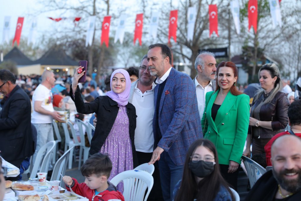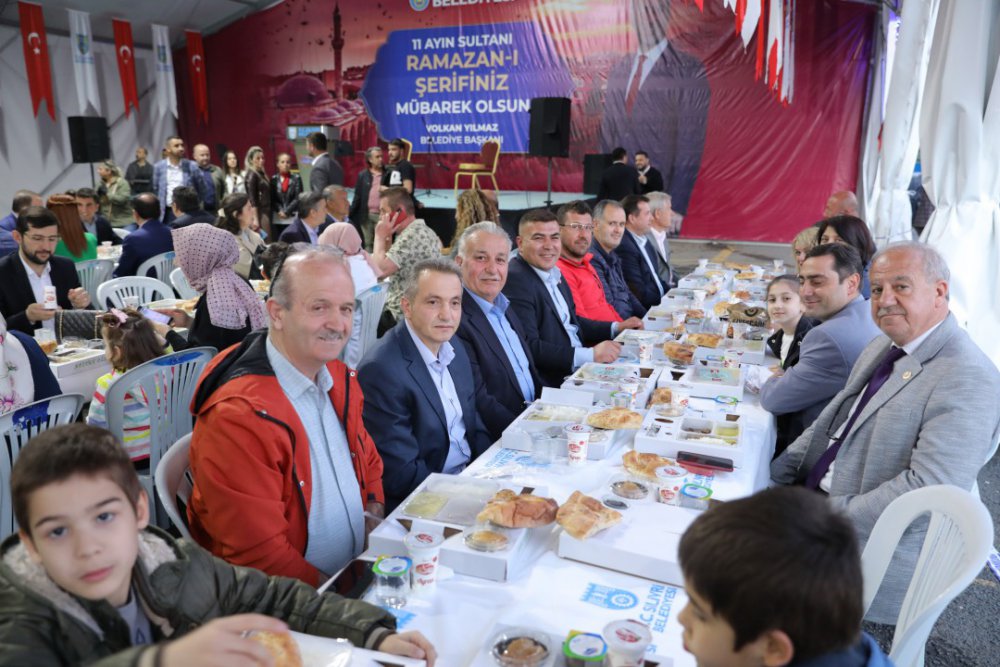 İftar programında konuşan Silivri Belediye Başkanı Volkan Yılmaz, “Bu gün Türkiye Büyük Millet Meclisi’nin kuruluşunun 102’nci yıldönümü. Türk’e zincir vurulamayacağı, Türk’ün bağımsız ve hür yaşayacağının tüm dünyaya Gazi Mustafa Kemal Atatürk ve silah arkadaşları tarafından ilan edildiği bugün aynı zamanda hem ülke çocuklarına hem de dünya çocuklarına armağan edilmiş bir bayram. Ben tüm ülkemizin ve çocuklarımızın 23 Nisan Ulusal Egemenlik ve Çocuk Bayramını tebrik ediyorum. Kutlu olsun, mutlu olsun. Silivri Belediyesi olarak kurmuş olduğumuz bu helal gönül sofralarının Silivri Belediyesinin kasasından kurulmadığı, hayırsever iş insanlarımız tarafından kurulduğunun altını çizmek istiyorum. Bu günkü iftarımız da Mektebim Kolejinin ve Ayyıldız Beton firması Mehmet Ayyıldız beyefendinin katkıları ile kuruldu. Kendilerine çok teşekkür ediyorum. Bu vesile ile tüm hemşehrilerimizin yaklaşan Kadir Gecesini ve Ramazan Bayramını tebrik ediyorum. Ramazan ayında tutulan oruçlar, ibadetler hepsi ayrı güzel. Bunun yanı sıra Ramazan ayı sevgili Peygamber Efendimizin, ‘Komşusu açken tok yatan bizden değildir.’ anlayışının Türk İslam coğrafyasında hayat bulduğu bir aydır. Bölüşme, paylaşma ayı, darda olanı, zorda olanı koruma ve kollama ayıdır. Onun için infak kültürü ile hayır hasenat yapan herkese çok teşekkür ediyorum. Bugün ilçe protokol üyelerimiz ile birlikte 2.500 vatandaşımızla iftar açtık. Ama Türkiye yalnızca Türkiye’den ibaret değil. Bugün Silivri Belediyesi Bulgaristan’ın Şumen ilinde 3 Müslüman Türk köyümüzde 5’er yüz kişilik iftar veriyor. Ercan Çalışkan kardeşimiz bizi temsilen orda. Kendisi ile yaptığım görüşmede, oradan bulunan Mehmet amcanın salonda sıkıntı olmasın diye Türk Bayrağı olmamasından duyduğu üzüntüyü ifade etti. Bende kendilerine şunu söyledim, ‘Mehmet amcaya selam söyle. Türk Bayrağı o salonda olacak. Oradaki 500 kişi birer Türk Bayrağı gibi o iftar salonunda dalgalanacak.’ dedim. Onun için gönül coğrafyalarımıza el uzatmaya, ruh coğrafyamıza ruhumuzu vermeye devam edeceğiz.” diyerek iftar programına katılan protokol üyelerine ve vatandaşlara teşekkür etti.