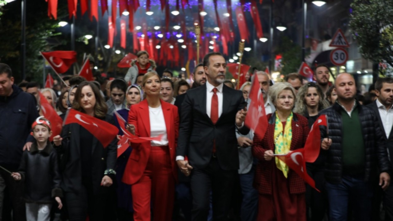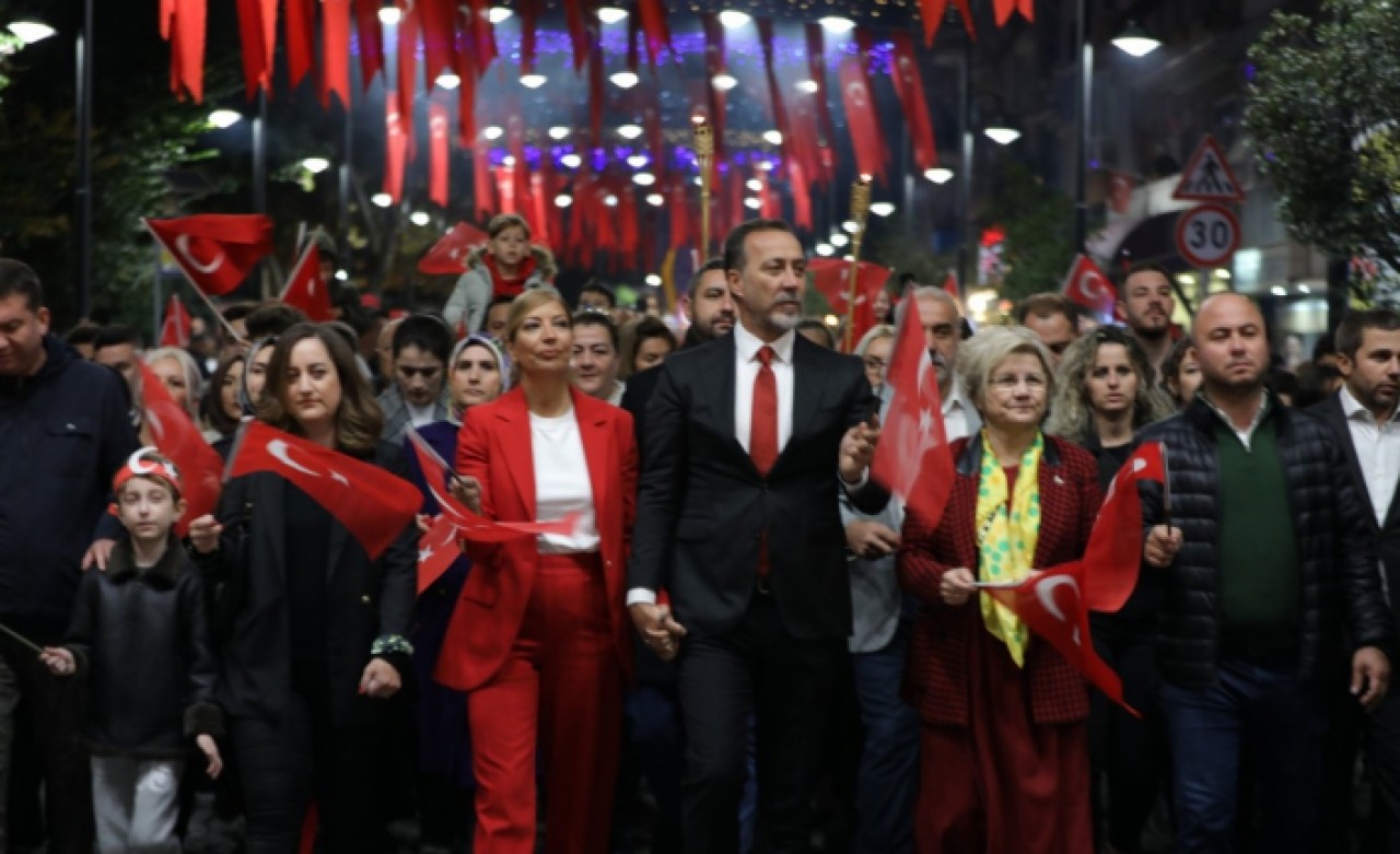 Silivri Belediyesi, 29 Ekim Cumhuriyet Bayramı’nın 99. yıl dönümü kapsamında Cumhuriyet Yürüyüşü düzenledi. Saat 19.30’da Kaymakamlık binası arkasındaki 19 Mayıs Meydanı’nda başlayan yürüyüş, Silivri sahilindeki Atatürk Anıtı’na kadar devam etti. Ellerindeki Türk bayrakları ve meşalelerle belediye bandosu eşliğinde yürüyen Silivrililer, marşlar söyleyerek Türk bayraklarını caddelerde dalgalandırdı. Evlerinde bulunan vatandaşlar pencereleri ve balkonlarına çıkarak Cumhuriyet Yürüyüşüne destek oldu. Konser alanında saygı duruşunda bulunuldu ve İstiklal Marşı okundu. Cumhuriyet Yürüyüşüne; Silivri Kaymakamı Tolga Toğan, Silivri Belediye Başkanı Volkan Yılmaz, belediye meclis üyeleri, siyasi parti temsilcileri, muhtarlar, oda ve dernek başkanları, kamu kurum ve kuruluş temsilcileri ile binlerce Silivrili katıldı. Yürüyüşün ardından bayram kutlaması, Sanatçı Mustafa Yıldızdoğan konseri ile devam etti. Konser öncesi sahne alan Silivri Dans Ekibinin yöresel halk dansları gösterisi, izleyiciler tarafından büyük beğeni ve alkış topladı.