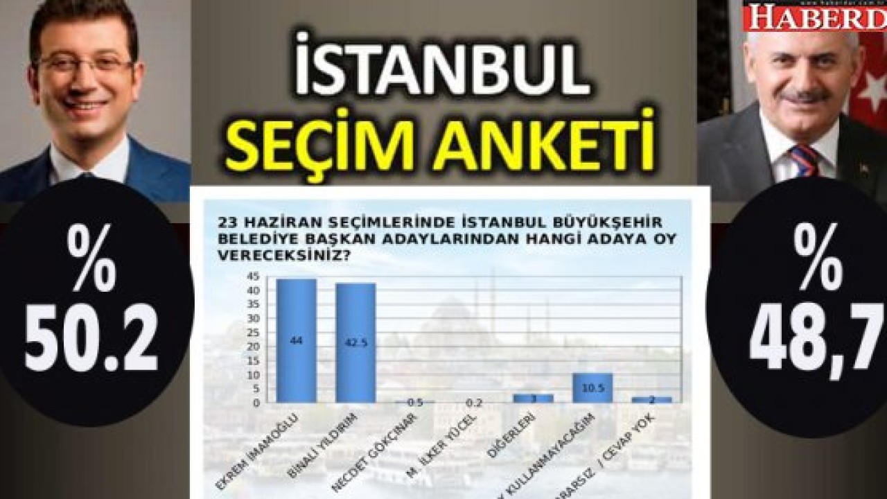 Telefon görüşmeleri aracılığı ile yapılan araştırmada 23 Haziran seçimlerinde hangi adaya oy vereceği de soruldu. Son seçim anketine göre Ekrem İmamoğlu, Binali Yıldırım'ın önünde.
