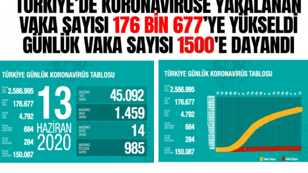 Bakan Koca'nın paylaştığı bilgilere göre Türkiye'de toplam vaka sayısı 176 bin 677, can kaybı 4 bin 792'ye yükseldi. Son 24 saatte, 985 kişinin daha iyileşmesiyle Kovid-19 tedavisi tamamlananların sayısı 150 bin 87 oldu.