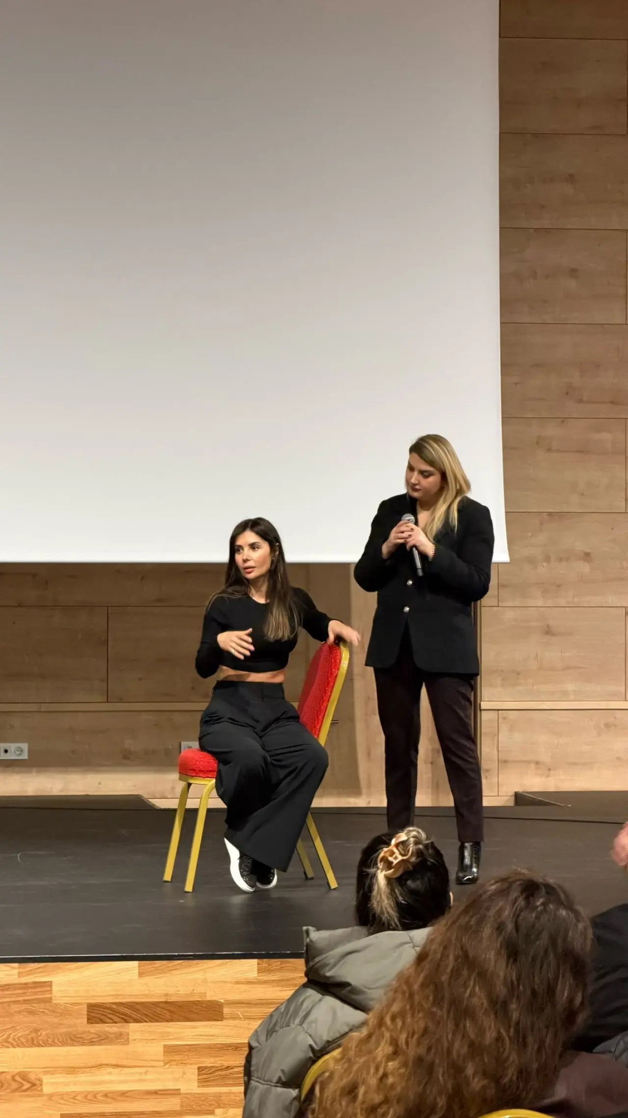Bilen kadın soru sorar.