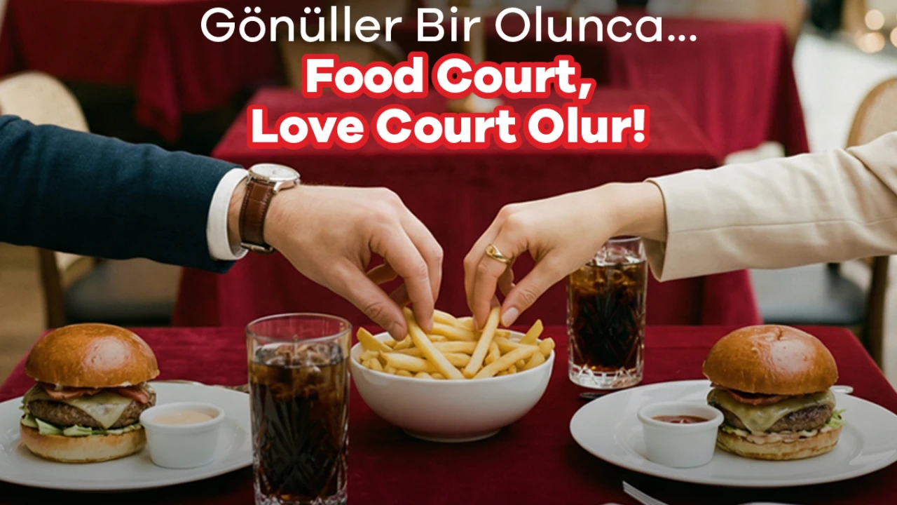 “Gönüller bir olunca, Food Court Love Court olur” mottosuyla hayata geçirilen etkinlikte, hızlı tüketim alanı; masa düzeni, servis anlayışı ve canlı müzik eşliğinde romantik bir buluşma noktası olacak.