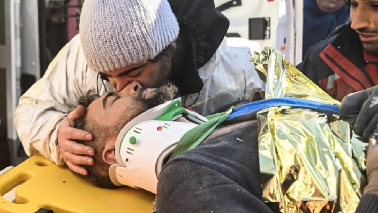 Depremden 77 saat sonra sıkıştığı yerden çıkarılan yaralı, ambulansla hastaneye sevk edildi. Yılmaz Çetin'in çıkarıldığını gören erkek kardeşi, ağabeyini öperek karşıladı.
