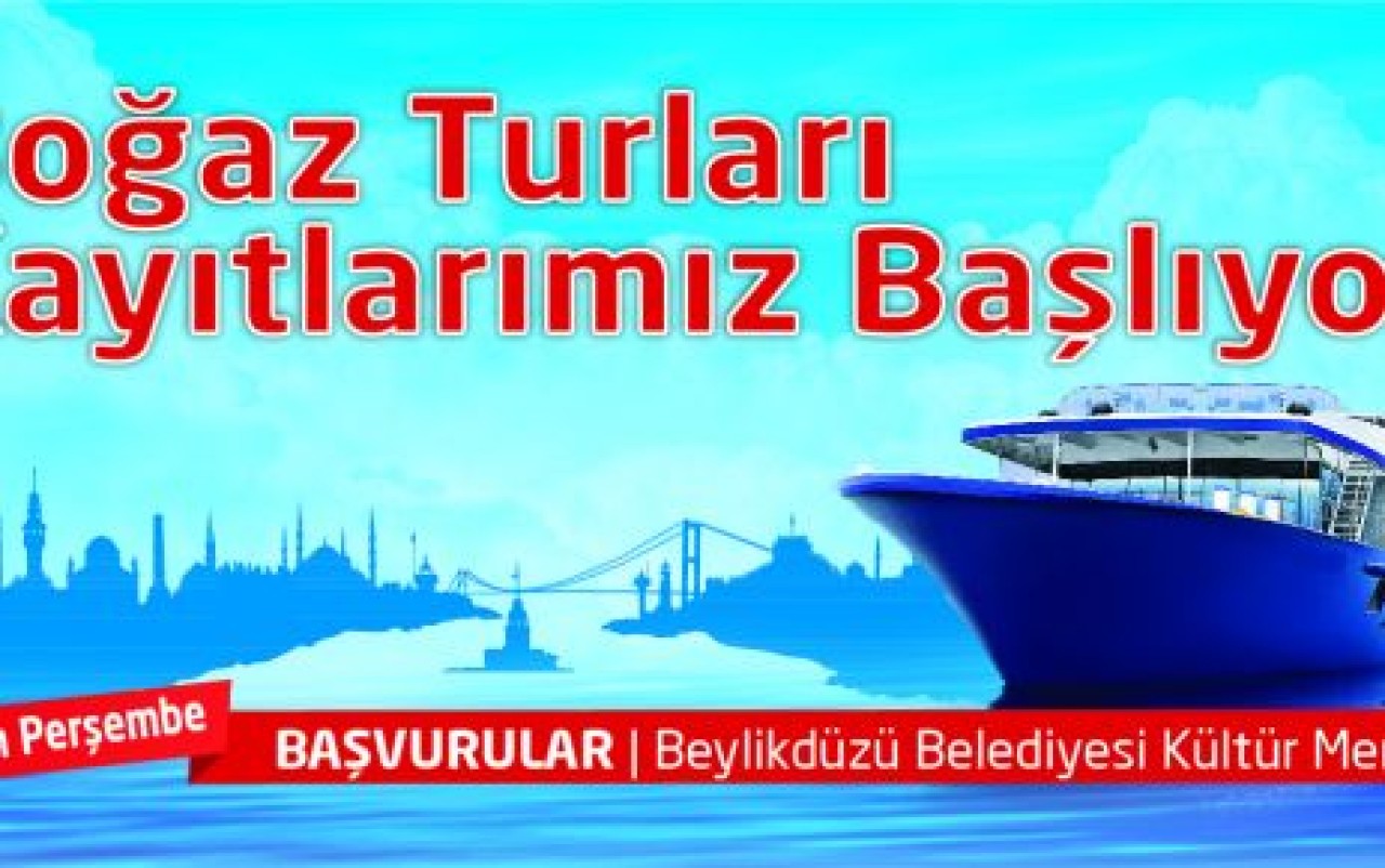 Beylikdüzü Belediyesi’nin sosyal ve kültürel etkinlikleri devam ediyor. Yaz aylarının gelmesi ile birlikte organize edilen “Boğaz Turları” 15 Haziran’da ilk turuna çıkıyor. Tur kayıtları 6 Haziran Perşembe günü başlıyor. Boğaz Turları’na katılmak isteyen vatandaşların Beylikdüzü Belediyesi Kültür Merkezi’nde bulunan Kültür ve Sosyal İşler Müdürlüğü’ne TC Kimlik numaraları ile şahsen başvuru yapmaları gerekiyor.