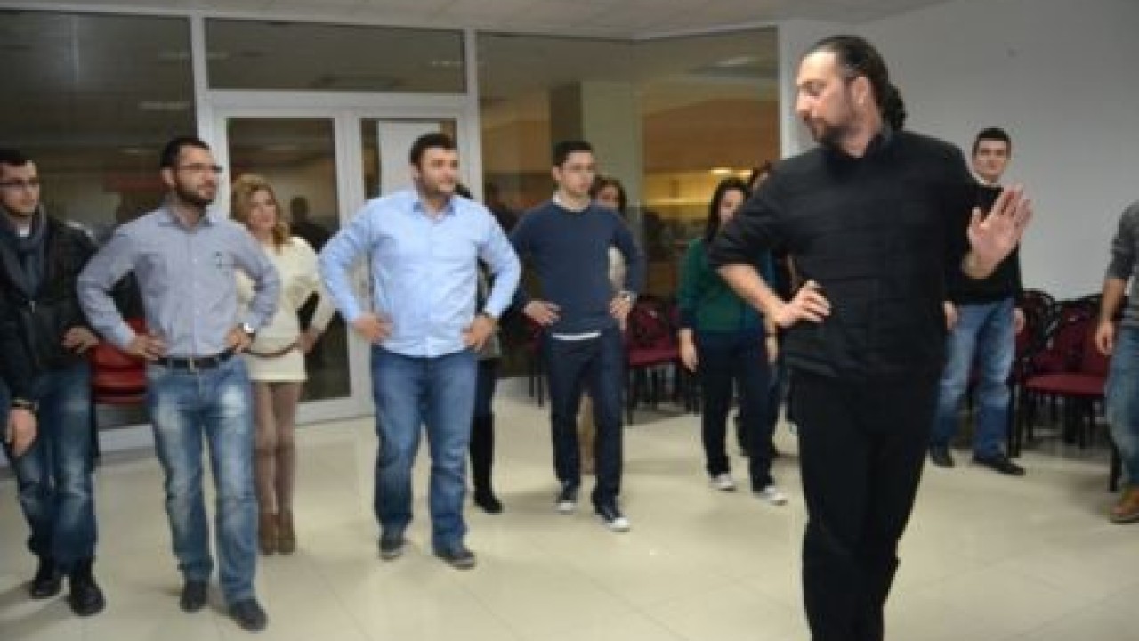 Tanıtım amaçlı temel dans hareketlerinin de gösterildiği toplantıda, katılımcılar dans eğitmenlerinin komutu eşliğinde müziğin ritmine ayak uydurdular.