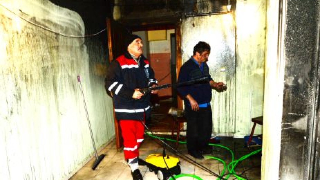 Barış Mahallesi'nde gerçekleşen yangın herkesi korkuttu. Can kaybı ve yaralanmanın yaşanmadığı yangının, itfaiye tarafından söndürülmesinin ardından olay yerine ulaşan belediye ekipleri evde temizlik çalışmalarına başladı. Yangın nedeniyle zarar gören eşyalar dışarı çıkartıldı, kapı, pencere ve duvarlar temizlendi. Belediye ekipleri, yanan evde kapı ve çerçevelerin değiştirilmesinin yanı sıra odaların badana ve boyasının yapılması ve ev eşyalarının değiştirilmesi işlerini üstlendi.