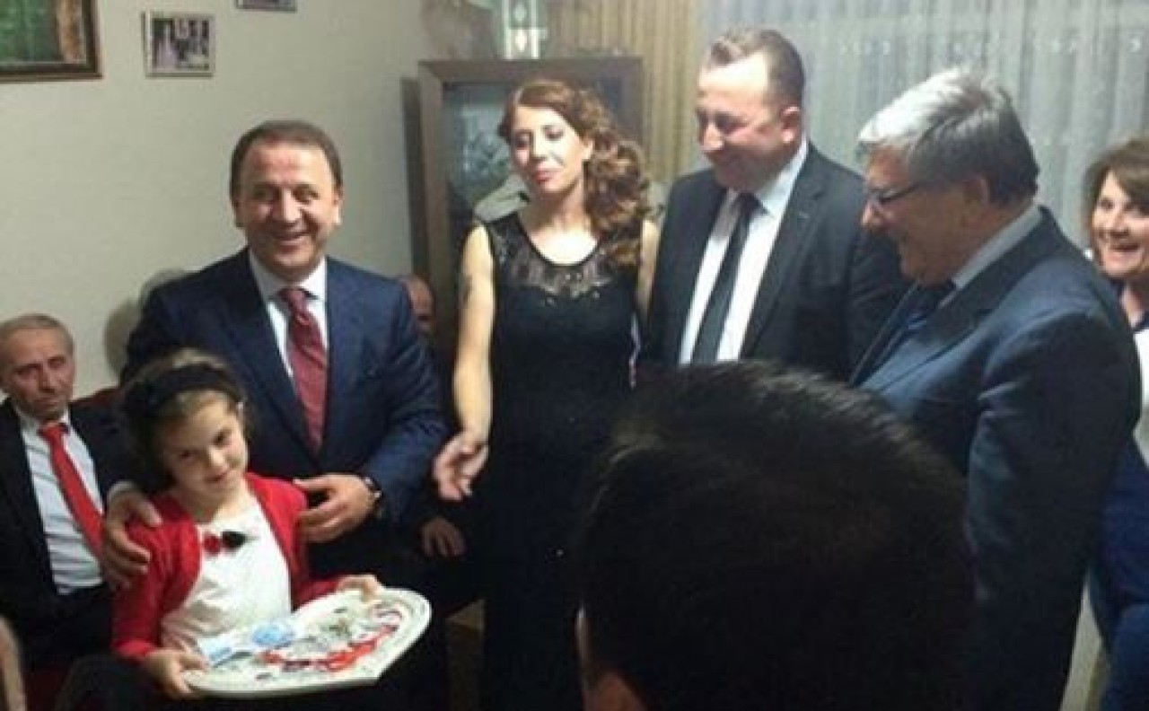 Kız isteme merasimi için Silivri Belediye Başkanı Özcan Işıklar, Esma Işıklar, CHP İlçe Başkanı Mümin Tuğlu, Şirin Tuğlu ve partililer adeta Fener Mahallesi'ne çıkartma yaptı.