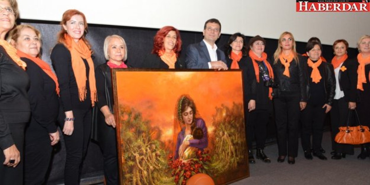 Kadına şiddetin sonlandırılması konusunda turuncu objelerle farkındalık yaratılan etkinliğin son gününe Başkan İmamoğlu da katıldı. Kadınların toplumda daha fazla yer alması için yaptığı çalışmalar nedeniyle takdir toplayan İmamoğlu’na Kent Konseyi tarafından Ressam Remzi Taşkıran’ın “kadına saygı” temalı tablosu hediye edildi.