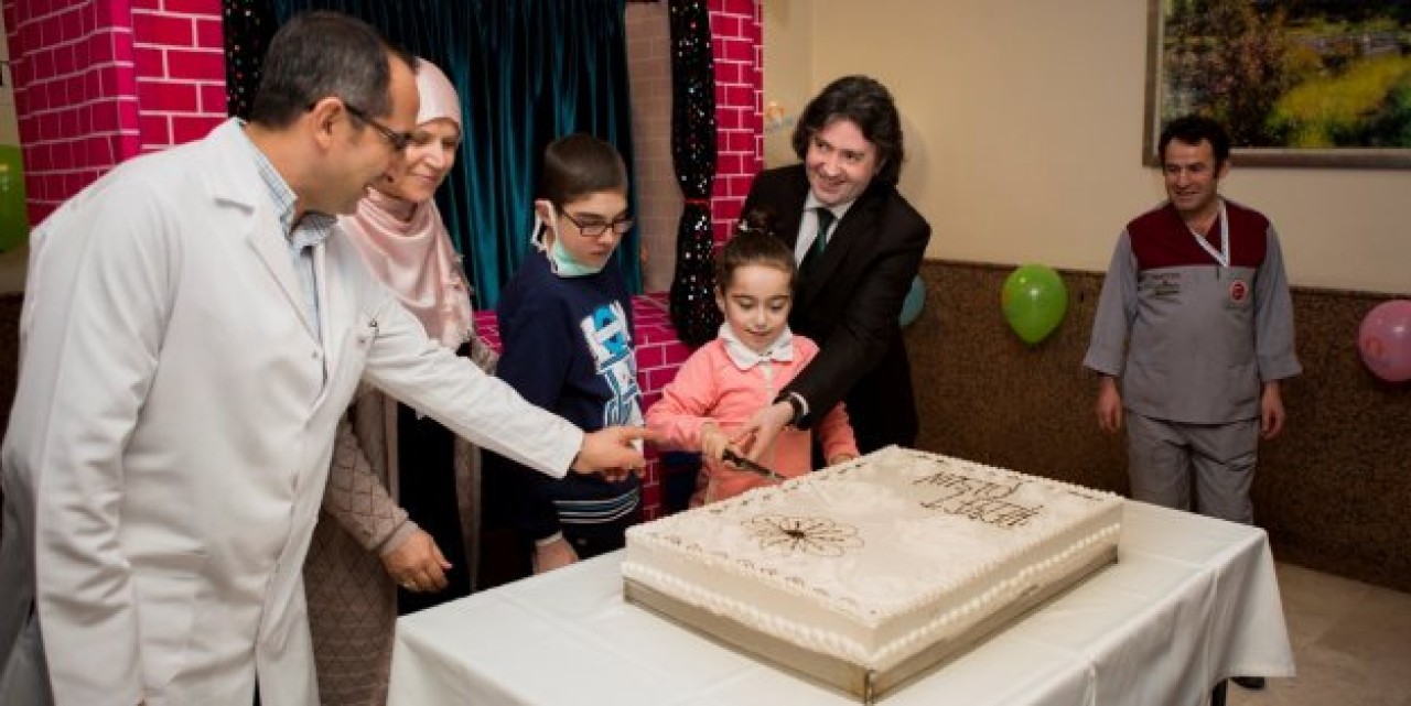 Ziyarette, Küçükçekmece Belediyesi Kültür ve Sosyal İşler Müdürü Salih Nurettin Çevik’in konuşmasının ardından öğrenciler ve tedavi gören minikler birlikte pasta kesti.