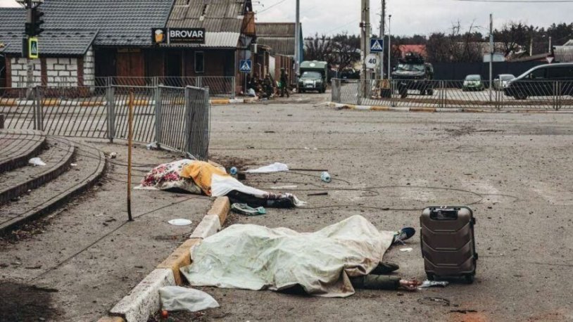 Önceki gün Irpin’de oluşturulan “sahte ateşkes” ile birlikte yaşadıkları şehri terk etmek isteyen üç kişi ellerinde bavullarla kaçarken Rus hava saldırısı sonucu yaşamını yitirmişti. Bu fotoğraf uluslararası kamuoyunda gündem olurken, Rusya’nın ateşkesi ihlal etmesinin sonucunda masum sivillerin ölmesi üzerine tepkiler oluşmuştu.