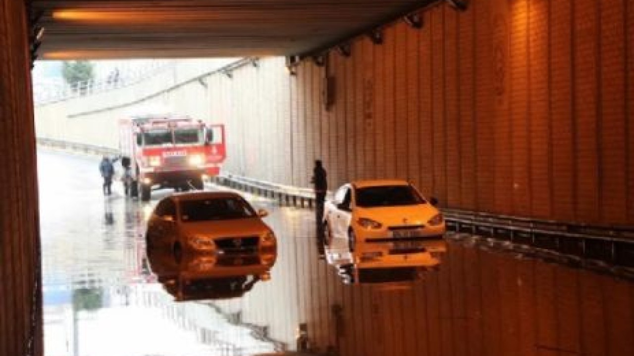 Suyun yüksekliğini kestiremeyen araçlar ise alt geçide girince suya gömüldü. Yarıya kadar suya gömülen bir araç, sürücüsünün çabalarıyla çıkartıldı.