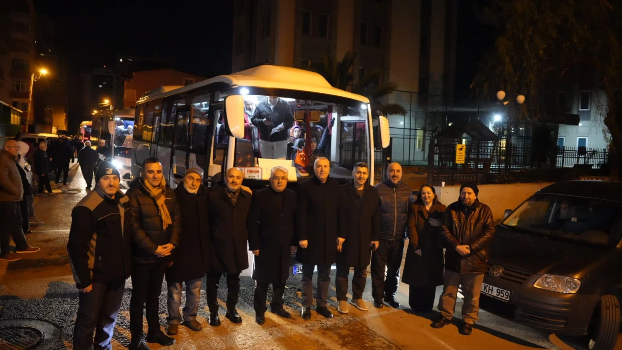 Kartal Esentepe Mahallesi Yeşil Camii önünde sabah 5’ten itibaren Kartal Belediyesi’nin araçları hizmet vermeye başladı. İkram aracı bir yandan çorba ve sıcak içecek servisi için hazırlanırken toplam 7 otobüs de havalimanına gidecek vatandaşlar için hazır bulundu. Umre ziyareti için kutsal topraklara gidecek olan 240 vatandaşı İstanbul Havalimanı’na götürmek üzere Kartal Belediyesi tarafından hazırlanan otobüsleri Kartal Müftüsü Mehmet Öztürk ile birlikte tek tek ziyaret ederek vatandaşlara iyi yolculuklar dileyen Kartal Belediyesi Başkan Vekili Olcay Özgön, Kartal Belediye Başkanı Gökhan Yüksel’in de selamlarını iletti. 14 gün sonra sona erecek Umre ziyaretin ardından dönüşte de Kartal’a ulaşımın Kartal Belediyesi'ne ait otobüslerle sağlanacağını ifade etti. Umreye giden vatandaşlar dualar ile yolcu edildi.