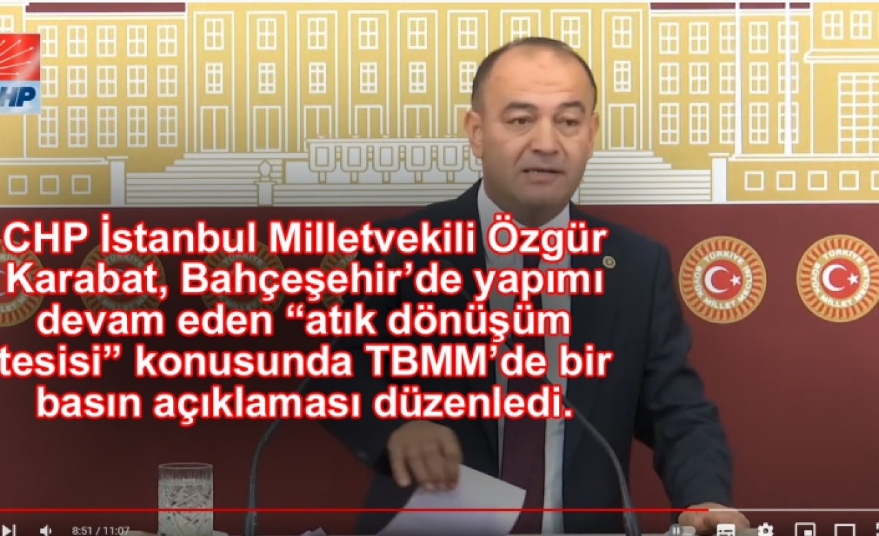 CHP İstanbul Milletvekili Özgür Karabat, Başakşehirşehir Belediyesi’nce Bahçeşehir bölgesinde yapımına başlanan ve halkın tepkisiyle karşılaşan atık dönüşüm tesisi konusunda TBMM’de bir basın toplantısı düzenledi. Açıklamasında ‘Uluslararası kaliteli kent yaşam’ sertifikalı bir bölgeye layık görülen katı atık döşüm tesisinin bölgede ciddi çevre sorunlarını yaratacağını ifade eden Karabat: “Projeye dair eleştiri ve tepkiler vatandaşlarımız ve sivil toplum kuruluşlarımız tarafından her fırsatta dile getirilse de halkın talep ve beklentilerini görmezden gelen bir yerel yönetim anlayışıyla karşı karşıyayız.” dedi.
