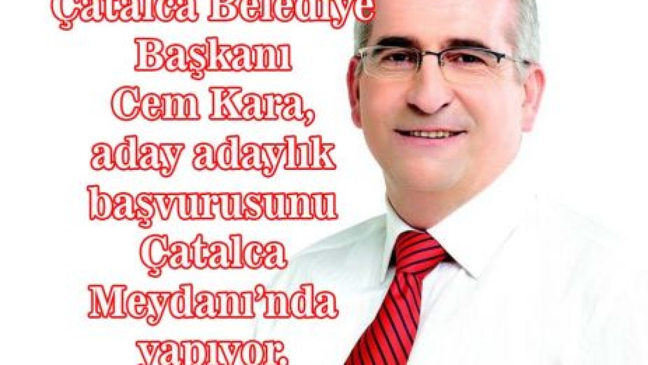 02 Eylül 2013 Pazartesi günü saat 13.30’da Cumhuriyet Meydanı’nda Çatalcalılar ile buluşacak olan Cem Kara daha sonra saat: 14.00’da Çatalca Cumhuriyet Halk Partisi İlçe binasına geçerek burada resmen aday adaylık başvurusunda bulunacak ve basın açıklaması yapacak…