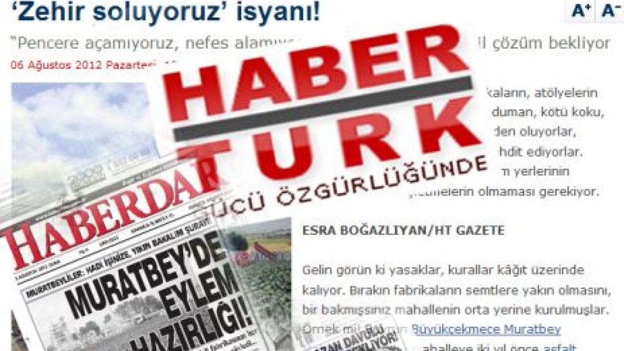 3 Ağustos 2012 Cuma günü HABERDAR’da yayınlanan ‘MURATBEY’DE EYLEM HAZIRLIĞI’ haberi, dün de (06 Ağustos 2012 Pazartesi) HABERTÜRK’TE ‘Zehir soluyoruz isyanı!’ başlığı ile yayınlandı.