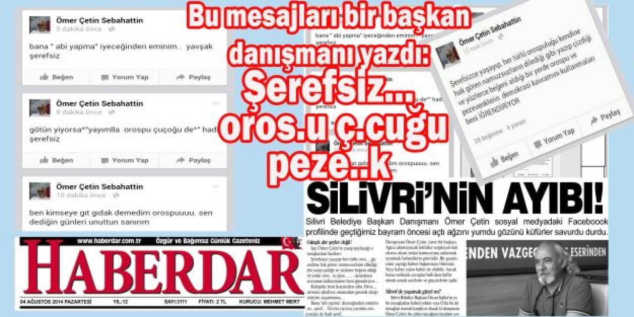 Bu gün; Silivri Belediye Başkan Danışmanı Ömer Çetin, yarın bir başkası. Ağıza alınmayacak küfürler sergileyen kim olursa olsun onları kamuoyuna anlatmak tanıtmak habercilerin görevidir. Bir gazetecinin yaptığı haberi beğenmeye bilirsiniz. Veya haber yalan haber de olabilir. Ancak buna verilecek cevaplar belli iken küfür etmek ancak acizlerin ve güçsüzlerin işidir.