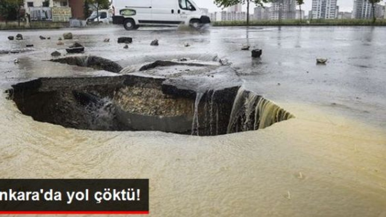Yenimahalle ilçesindeki Batıkent semtinde yağış nedeniyle asfalt yolda çökme meydana geldi.