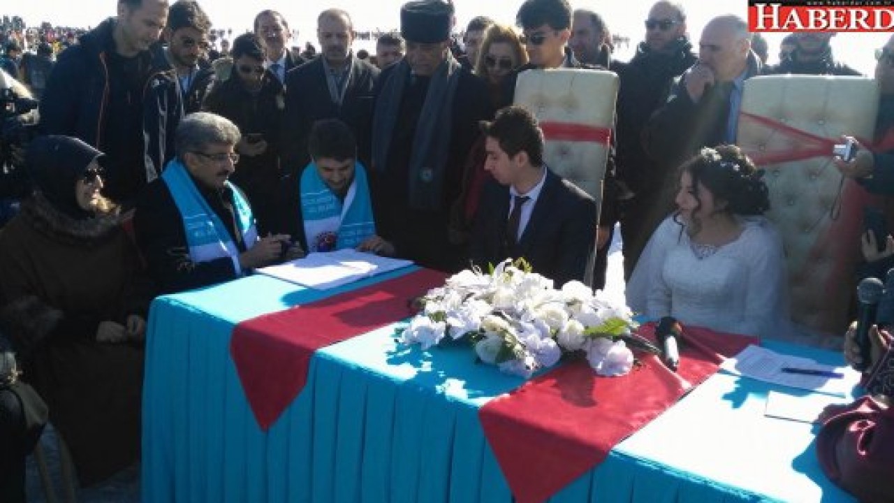 Çıldır'da memur olan Özgür Koçak ile Hilal Yaycı ise nikahlarını donmuş göl üzerinde kıydırdı. Gelinlik ve damatlık giyen çiftin, nikah şahitliğini, Vali Mehmet Emin Bilmez ve Milletvekili Orhan Atalay yaptı. Donmuş gölün ortasına kurulan nikah masasına müzik ve alkışlar eşliğinde gelen çift hayatlarını birleştirerek 'evet' dediler. Nikah sonrası çiftlere mutluluk dileyen Çıldır Belediye Başkanı Yakup Azizoğlu, evlenecek çiftleri Çıldır ilçesine davet etti. Azizoğlu, "Tüm evlenecek çiftleri ilçemize davet ediyorum. Gelen çiflerimize göl üstünde nikah kıyacağız. 5 günlük balayı masraflarını biz karşılayacağız. Kendilerini tüm tarihi ve turistik yerleri gezdireceğiz. Eskimo usulü balık tutacağız. Eskimo evlerinde misafir edip Gürcistan gezisine göndereceğiz" diye konuştu. Özgür ve Hilal çifti ise "Çıldır gölü güzel ve anlamlı bir yer. Nikahımızı da burda yaptık ki bizim için daha unutulmaz olsun. Böyle bir etkinlikte yer aldığımız için nikahımız daha iyi oldu. Çok mutlu olduk" dedi.Nikah sonrası Kırgız sporcuların sergilediği Gökbörü oyunu nefesleri kesti. At üzerinde kuzu postunu almaya çalışan atlılar zaman zaman düştüler. Ayrıca buz üstünde atlı kızak, dört nal, rahvan/yorga, cirit kategorilerinde yarışmalar düzenlendi. Çıldır Gölü üzerinde atlı kızaklar yarışı sırasında atlı kızaktan düşen kızak sürücüsü atların iplerini bırakmayarak kızağın arkasından sürüklenerek gitmesi izleyen tarafından korkuyla izlendi. Programda Gürcistan'dan sporcuların katıldığı yarışmalarda Kafkas halk oyunları, karda güreş, buz pateni gösterileri ile aşıklar şöleni gibi birbirinden renkli etkinlikler gerçekleştirildi
