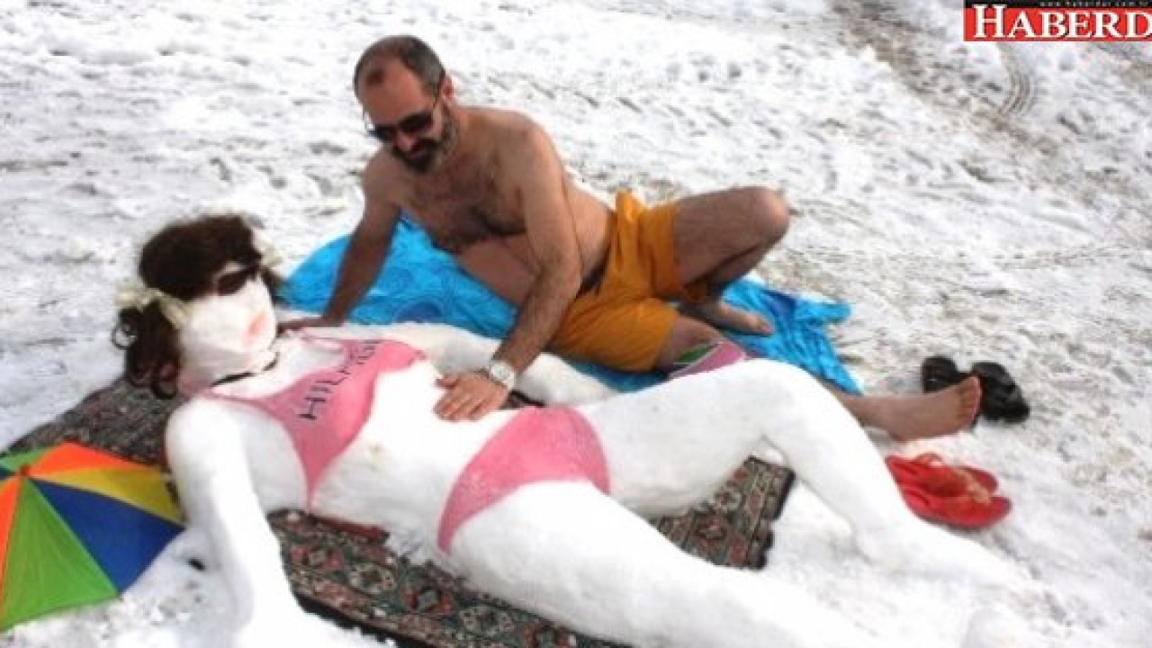Bikini giydirdiği kardan gelinin yanına plaj havlusunu sererek uzanan Ertan K., üzerine titrediği buz gibi eşine zarar görmemesi için krem sürmeyi de ihmal etmedi. İlişkilerinin çok soğuk olduğunu dile getiren 35 yaşındaki Ertan K., 9 yaşındaki kızıyla gazetecilerin sorularını cevaplandırdı.